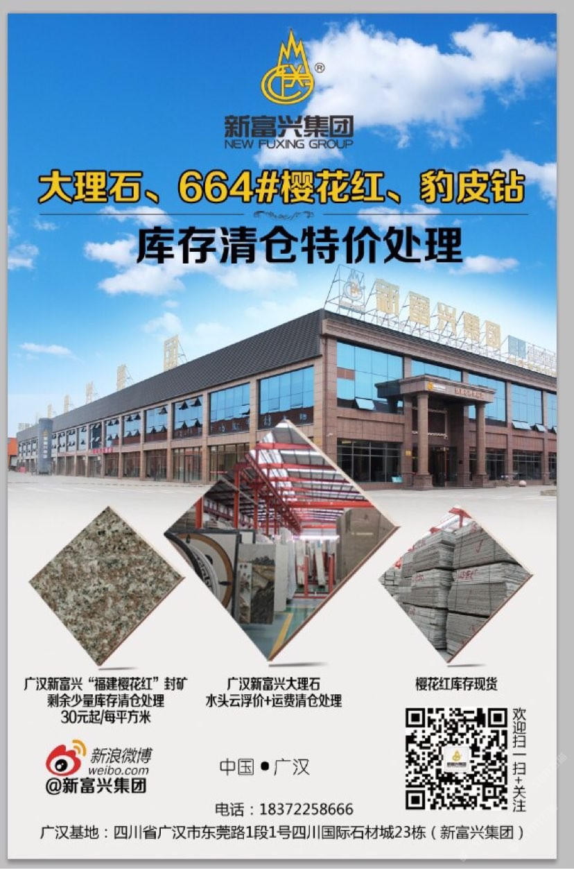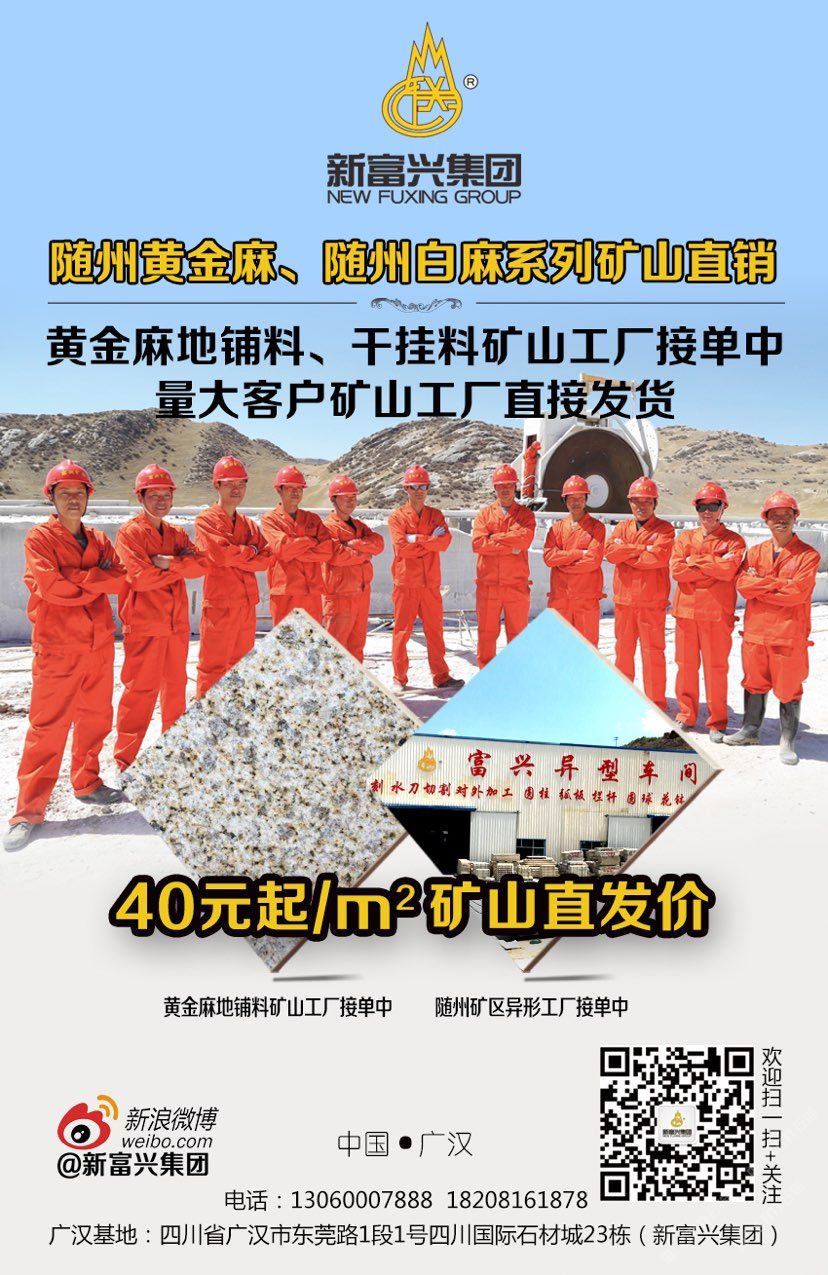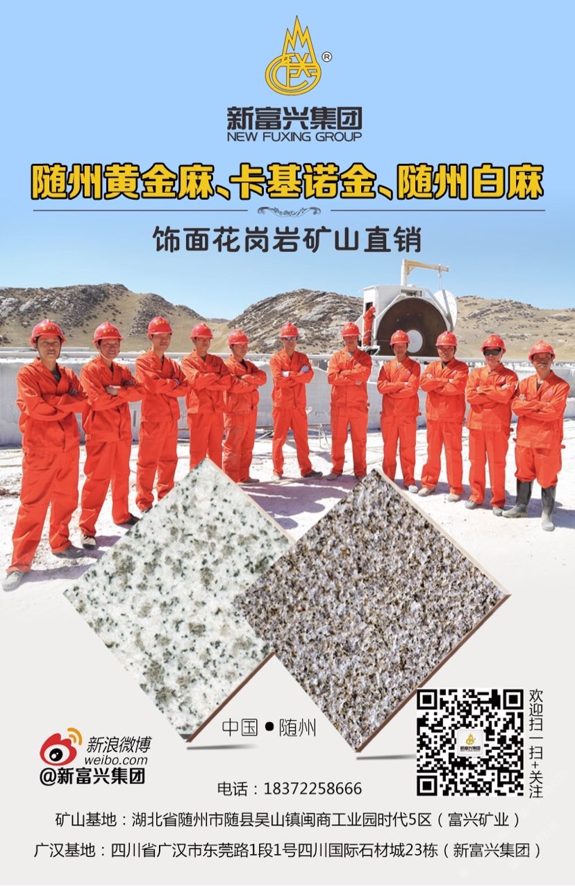 新富興集團旗下礦業(yè)板塊國內擁有6座大型礦山分別分布在福建、湖南、湖北、新疆等省市盛產(chǎn):664#羅源紅、隨州黃金麻、黃金鉆、卡基諾金、隨州白麻、新疆豹皮鉆、焉耆白麻、湖南芝麻灰等花崗巖;石材板塊分別在四川省以及新疆維吾爾自治區(qū);新疆擁有三家企業(yè)其中四川省范圍內擁有3個大型石材加工基地;成都工廠位于成都沙西線主營:花崗巖工程建設用石材;2013年成立廣漢富興石業(yè)有限公司在四川廣漢市修建兩家工廠分別位于:四川省廣漢市東莞路一段1號四川國際石材城23棟和29棟;總占地面積55畝。成都工廠負責銷售自有礦山的石材產(chǎn)品以及其他品種進口、國產(chǎn)花崗巖石材產(chǎn)品大量使用于市政工程、房地產(chǎn)以及大型公共設施;廣漢工廠除專業(yè)批發(fā)自有礦山:福建、湖北、湖南、四川、新疆等省市自有礦山石材產(chǎn)品外,大理石是新富興集團四川地區(qū)石材產(chǎn)業(yè)的主力產(chǎn)品,早在1998年開始新富興集團前身企業(yè)之一“成都市金牛區(qū)富興石材加工廠”就已經(jīng)成為西南地區(qū)的進口大理石供應商之一;現(xiàn)目前集團規(guī)模不斷擴大并在福建、湖南、湖北、四川、新疆等地區(qū)開發(fā)6座大型礦山并有著的礦山資源優(yōu)勢掌握了產(chǎn)品的源頭以及多年積攢的社會的人脈資源與管理團隊擁有各種先進的技術與設備;承接國內外各種異形大理石、花崗石加工,廠區(qū)擁有先進的水刀設備多臺擁有紅外線橋式切割設備數(shù)十臺,全自動電腦仿形設備數(shù)十臺,全自動線條磨邊流水線設備多臺,異形圓柱設備多臺,異形車床等眾多異形設備同時擁有熟練的技師配合優(yōu)秀的管理者及高效率的服務團隊使得新富興集團四川地區(qū)石材產(chǎn)業(yè)板塊一直處于當?shù)匚恢?,為集團業(yè)績做出杰出的貢獻。