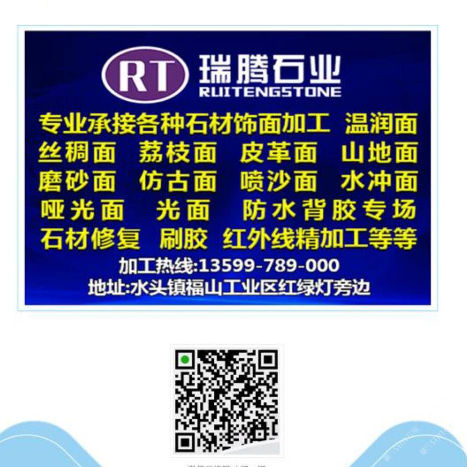 專業(yè)承接各種石材飾面加工,溫潤(rùn)面,荔枝面,仿古面,剁斧面,啞光面,專業(yè)石材防水背膠等等,20頭靖佑自動(dòng)磨對(duì)外加工,聯(lián)系電話13599789000