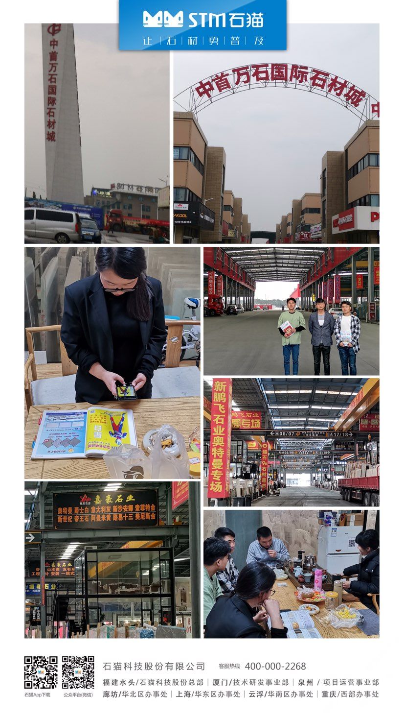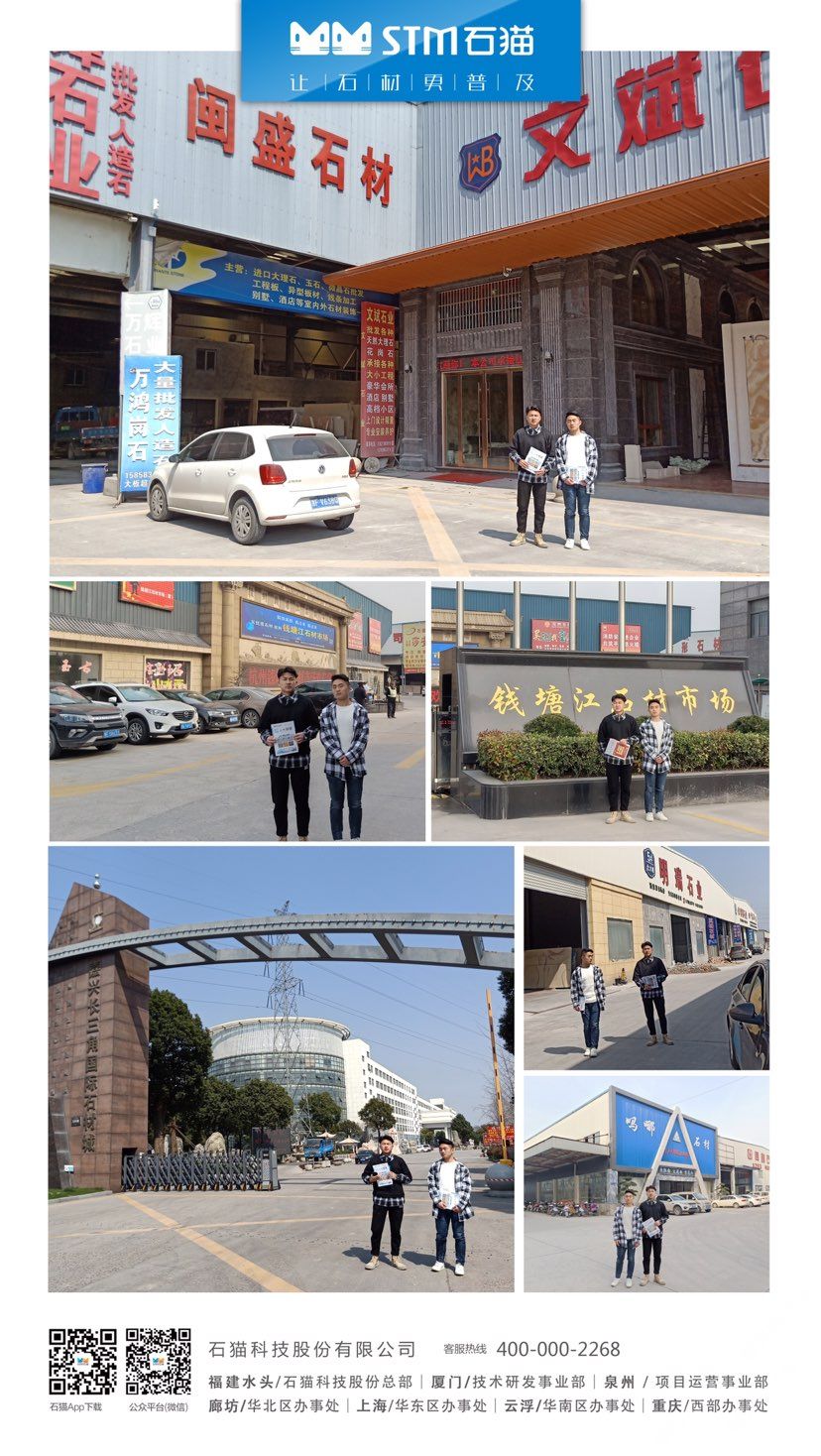 華東分公司先后與華東石材市場合作,包括上海東華環(huán)球石材市場、中首萬石國際石材市場、南通東升產(chǎn)業(yè)園、六泉國際石材市場等,隨后又與華東知名石材企業(yè)南通新景石材有限公司、隆川石材、康典石業(yè)、新鵬飛石業(yè)、宜興隆嘉石業(yè)、新澤海石業(yè)、南通杰恒石業(yè)、珍品玉石合作,打造共贏局面。石貓致力于與各大優(yōu)秀石企共同進(jìn)步,共同發(fā)展,尋求石材行業(yè)新發(fā)展。