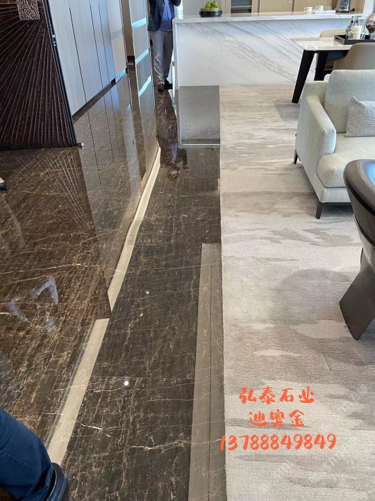 迪奧金底色偏深,表面賦以金黃色及少量白色的線狀紋路,板面表現(xiàn)力非常搶眼,材質(zhì)能適用于各種不同的異型加工方式,是的優(yōu)質(zhì)工裝材料,不同于以往的黑色系大理石帶來的沉重感,迪奧金帶來的更多的是時尚感與尊貴感。