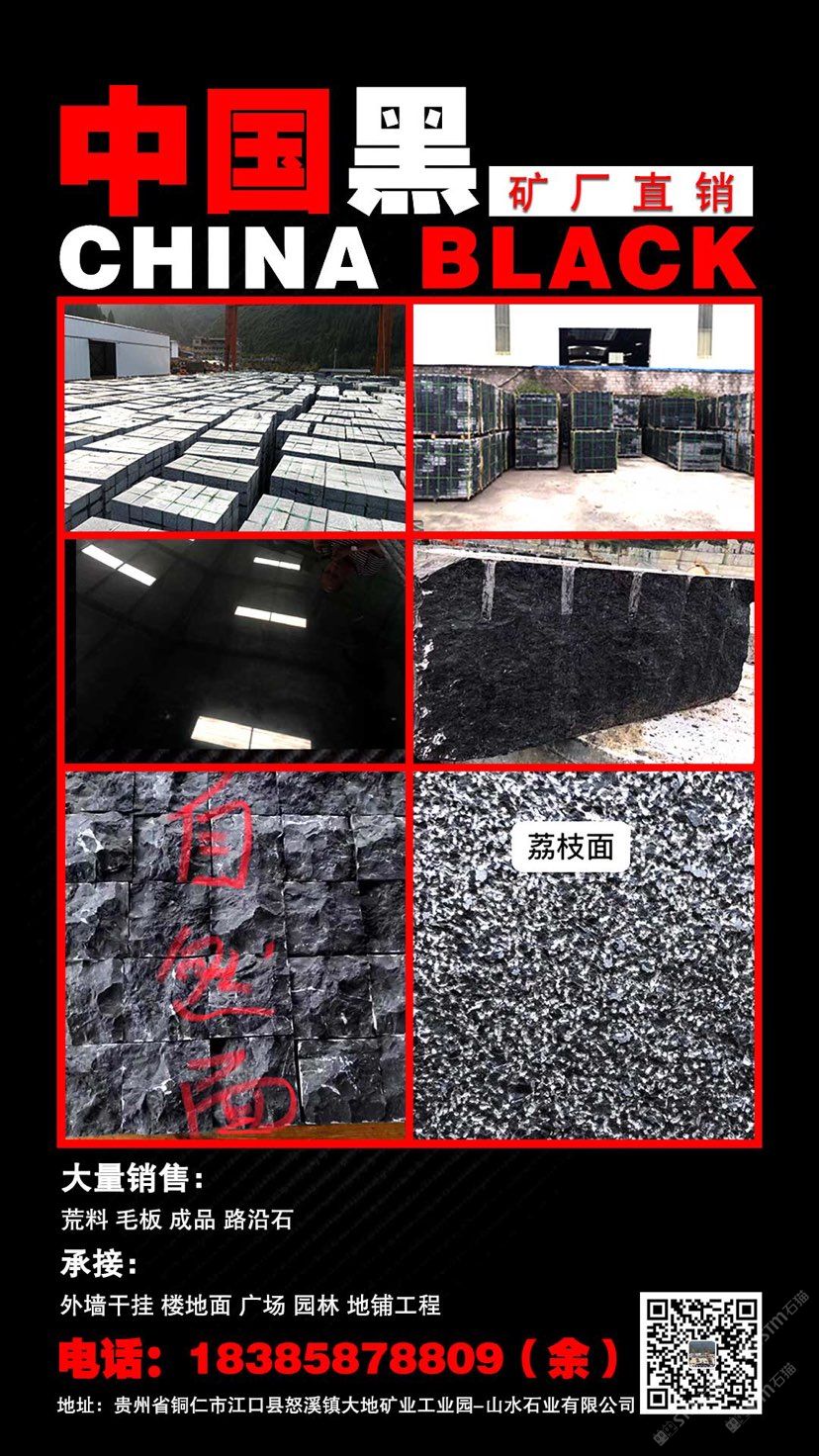 大地礦業(yè)-山水石業(yè)成立于2019年,注冊資金8000萬,位于貴州銅仁,是一家集礦石開采、開發(fā)、加工、銷售為一體的大型民營企業(yè)。 公司2010年開始開發(fā)石材,此石材命名為:“中國黑”?,F(xiàn)已取得采礦權(quán)并有3本采礦證,采礦面積4.65平方公里,擁有三千多畝開采權(quán),年開采量達(dá)到10萬立方米。