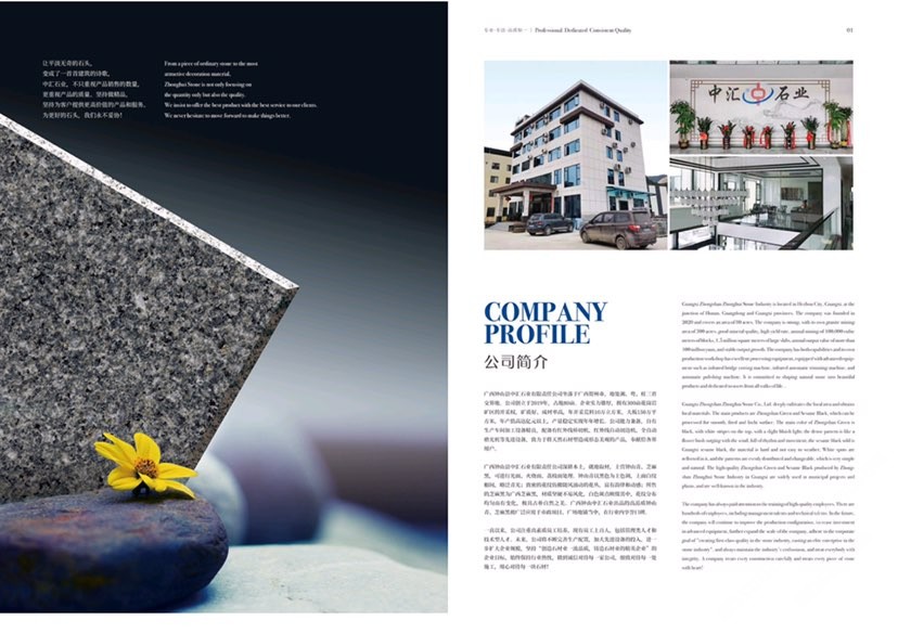 鐘山縣中匯石業(yè)有限責(zé)任公司坐落于廣西壯族自治區(qū)賀州市,地處湘、粵、桂三省交界地。公司創(chuàng)立于2019年,占地面積80余畝。企業(yè)實(shí)力雄厚,擁有300畝花崗巖礦區(qū)的開(kāi)采權(quán),礦質(zhì)好、成材率高,年開(kāi)采荒料10萬(wàn)立方米,大板150萬(wàn)平方米,年產(chǎn)值高達(dá)億元,產(chǎn)量穩(wěn)定實(shí)現(xiàn)連年增長(zhǎng)。公司才能兼?zhèn)?,自有生產(chǎn)車(chē)間,加工設(shè)備精良。配備有紅外線橋切機(jī)、紅外線自動(dòng)切邊機(jī)、全自動(dòng)磨光機(jī)、定厚機(jī)、仿形機(jī)、雕刻機(jī)等先進(jìn)設(shè)備,致力于將天然石材塑造成形態(tài)美觀的產(chǎn)品,奉獻(xiàn)給社會(huì)各界用戶。