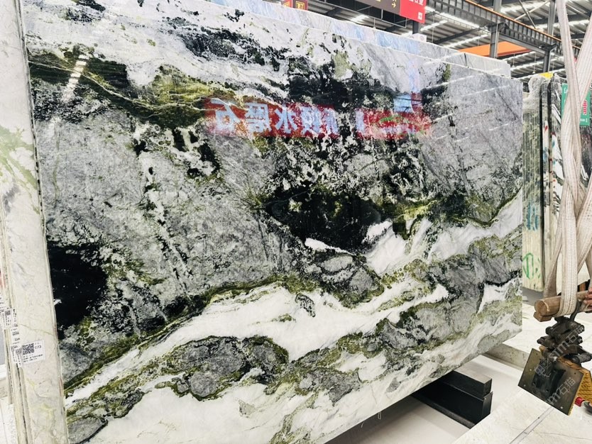 冷翡翠,墨爾本綠,水墨丹青,大板荒料,礦山直銷(xiāo)。奢石家居