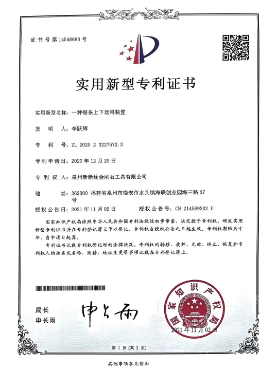 發(fā)布信息: 南安市新途金剛石工具針對目前大理石切割灰料難的現(xiàn) 狀,特別是“愛馬仕灰、瑪雅灰、意大利灰、露娜灰、閃 電灰、灰不灰、羅曼蒂克灰”等帶網(wǎng)格狀花紋、暗裂、孔 洞等切割隱患難加工的荒料,新途工具研發(fā)了一種不掉齒 的排鋸刀頭:“安全切割一切難加工的灰色大理石荒料”。 不單是刀頭鋸條特殊設計,更是結合了十多年的切割經(jīng) 驗,通過對機臺冷卻水及操作參數(shù)、退刀和出料等操作工 藝的改進,大大地提高了灰料切割的安全、高效。真正做 到了不倒料或少倒料。 作為長期穩(wěn)定的合作方,誠懇感謝:東升股份/遠達石材/ 奧力石業(yè)/泉興隆石業(yè)/翰將石業(yè)/中發(fā)大理石/新容石業(yè)/寶 多龍石業(yè)/銳豐源石業(yè)/漢榮石業(yè)/超億石業(yè)/宗藝石業(yè)/尊龍 石業(yè)/正大石業(yè)/銘裕石業(yè)/正方石業(yè)/尚衡石業(yè)/捷成石業(yè)/振 南石/天正/描側(cè)石/率硬石上/仏期石/流中石上/灣源 石業(yè)/瑜興石業(yè)/豪闊石業(yè)/興業(yè)石業(yè)/萬華石業(yè)/振興石業(yè)/豪 聞石業(yè)/奧都石業(yè)/永光石業(yè)/明晟石業(yè)/加州(安固)石業(yè) 等等優(yōu)質(zhì)供應商廠家(排名不分先后) 本公司秉承合作共贏,誠懇敬業(yè)的態(tài)度在石材加工切割領 域深度專研。歡迎廣大群體來領略新途。