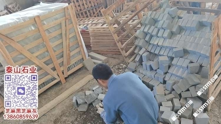 芝麻黑自然面小方塊馬蹄石滾磨石仿古石柬埔寨芝麻黑