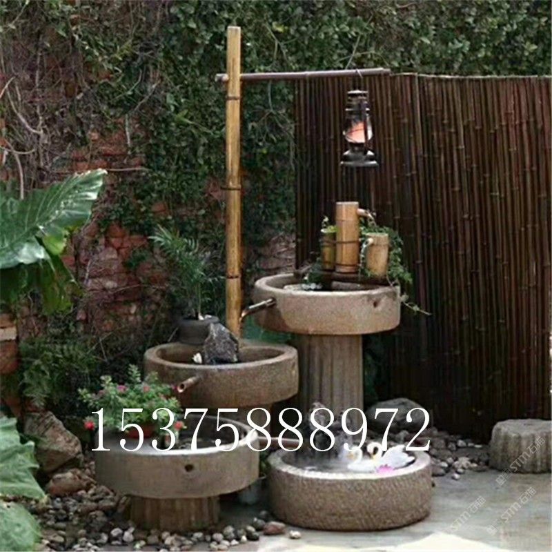 石雕流水組合 老石槽流水擺件 花崗巖流水魚缸可定制