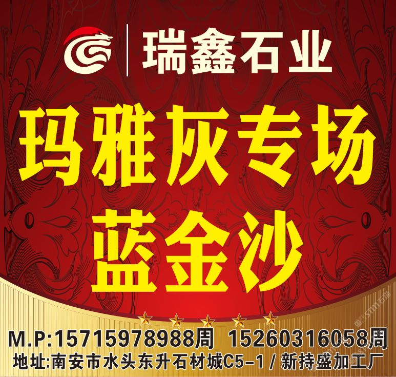 瑞鑫石材 聯(lián)系人:周先生    157****8988 查看 手機(jī)號(hào)碼:無(wú) 主營(yíng)范圍: 大板批發(fā)、 企業(yè)地址:福建泉州南安市水頭鎮(zhèn)