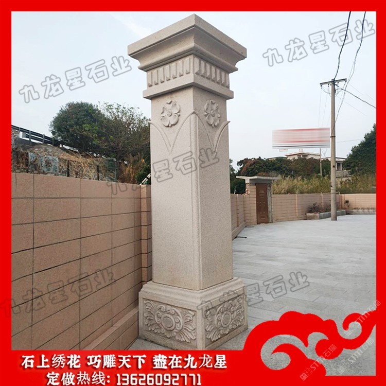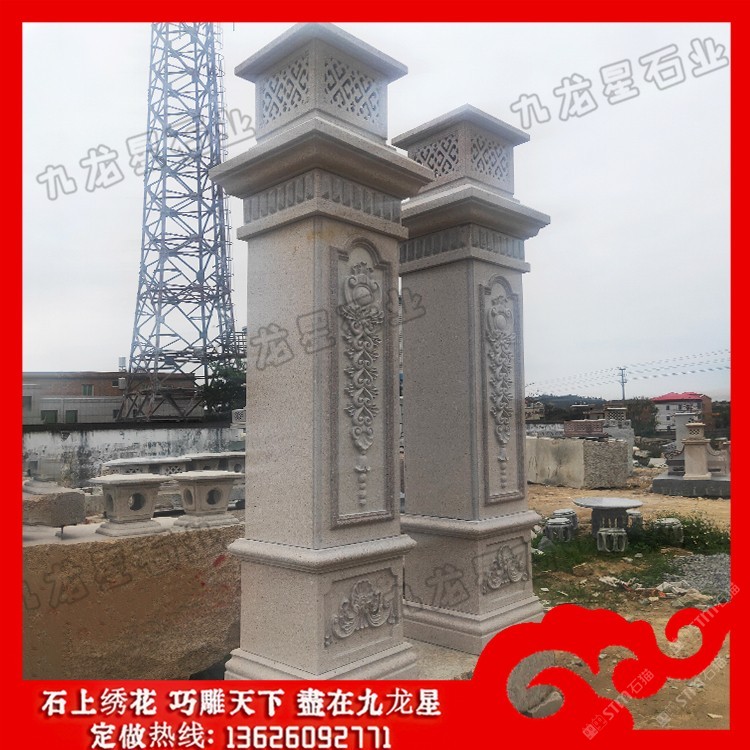發(fā)布信息: 院子大門(mén)石柱價(jià)格 石材大門(mén)門(mén)柱造型圖片——九龍星石業(yè)。 ? ??石材大門(mén)門(mén)柱造型圖片的形態(tài)與構(gòu)成中國(guó)柱式的斗栱從單層發(fā)展至多層,由較基本的四鋪?zhàn)髂酥涟l(fā)展到八鋪?zhàn)鳎纬梢环N十分精巧獨(dú)特的構(gòu)造,外觀上給人復(fù)雜多變、神秘莫測(cè)的感覺(jué)。斗栱的構(gòu)件又都是一些較小的部件,如“枓”、“栱”、“昂”等。將這些較小的部件以榫卯形式搭接咬合,組成一組整體性的空間框架體系,使人嘆為觀止。 ? ??院子大門(mén)石柱在低層或多層建筑中,當(dāng)層高較高時(shí),室內(nèi)空間中會(huì)出現(xiàn)過(guò)分細(xì)長(zhǎng)的柱子,使別墅圓柱子形態(tài)缺乏一定的張力,因此可采取相應(yīng)的裝飾設(shè)計(jì)方法從視覺(jué)上擴(kuò)張柱子的橫向體量感。 ? ??院子大門(mén)石柱的直徑和高度主要取決于荒料的尺寸,較小直徑一般為100mm,較大直徑小于等于2000mm;不論是整體的、還是部分的圓柱,其單體高度一般小于5000mm,但也有一些高度超過(guò)5000mm的特殊圓柱。標(biāo)準(zhǔn)的別墅大門(mén)石材柱子包括柱礎(chǔ)、柱體和柱帽三個(gè)部分。
