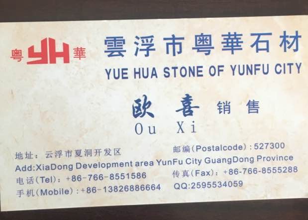 云浮市粵華石材 聯(lián)系人:歐喜    138****6664 查看 手機(jī)號(hào)碼:無 主營范圍: 大板批發(fā)、荒料、 企業(yè)地址:廣東云浮云城區(qū)夏洞開發(fā)區(qū)