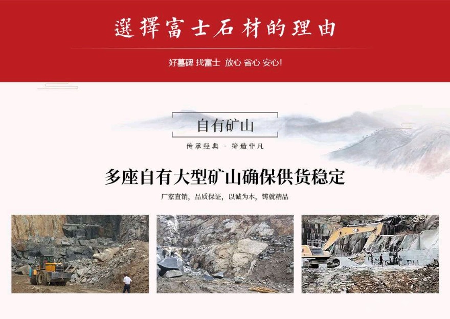發(fā)布信息: 富士石材位于世界石雕之都——福建惠安,于1996年成立,主營墓碑生產(chǎn)、墓碑研發(fā)設計、公墓運營&殯儀館運營、公墓陵園景觀、規(guī)劃設計等一條龍殯葬服務。公司自成立以來不斷引進當今世界先進的生產(chǎn)設備及加工工藝,用專業(yè)的設備造優(yōu)秀的產(chǎn)品。公司擁有一大批經(jīng)驗豐富的技術型管理人才,以嚴謹?shù)墓芾硖峁└咝У姆眨⑴湟韵冗M的電腦設計及現(xiàn)代化企業(yè)管理模式,秉承 “以客戶為中心、以質量為根本,以市場為導向、以人文為基礎”的經(jīng)營理念,經(jīng)過將近三十年的發(fā)展,逐步發(fā)展成為一家集墓碑加工生產(chǎn)、研發(fā)設計、陵園規(guī)劃設計、公墓運營&殯儀館運營為一體的公司。