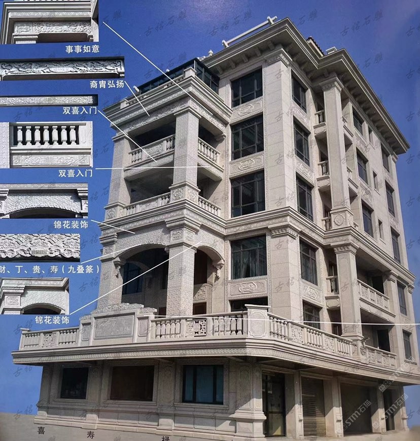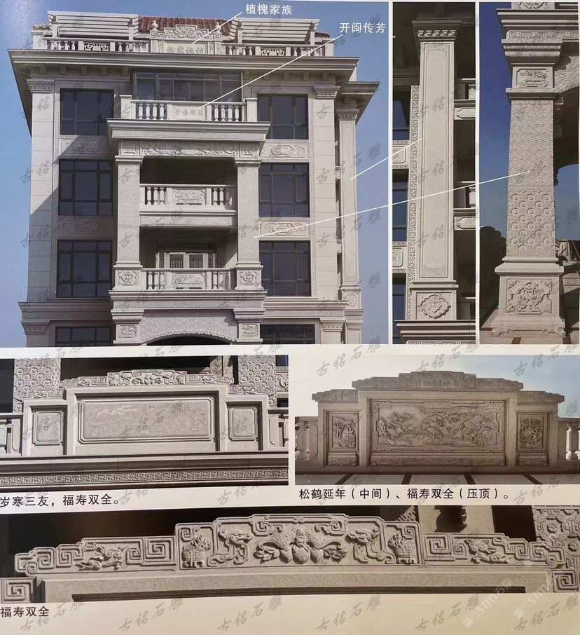 商圈 > 花崗巖 > 雕刻石雕別墅石材裝飾欄桿線沿入戶門窗戶露臺觀景亭