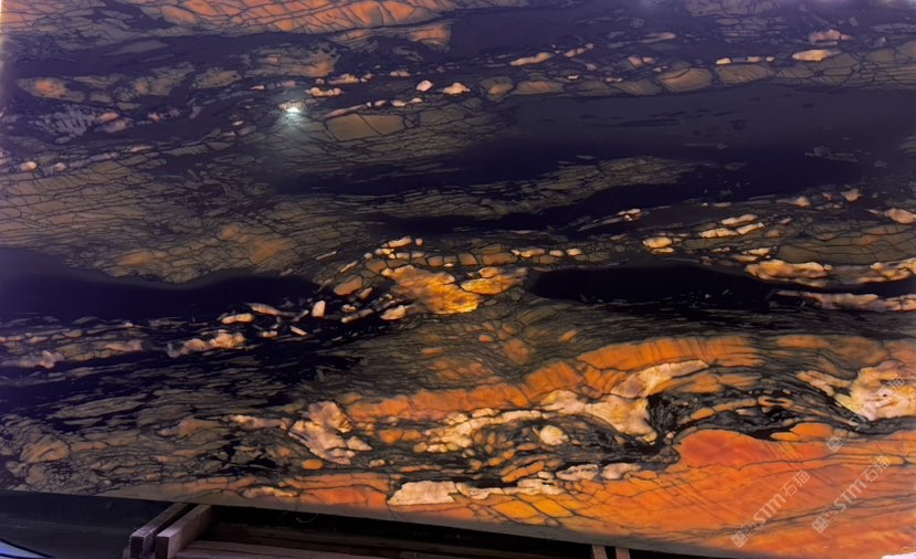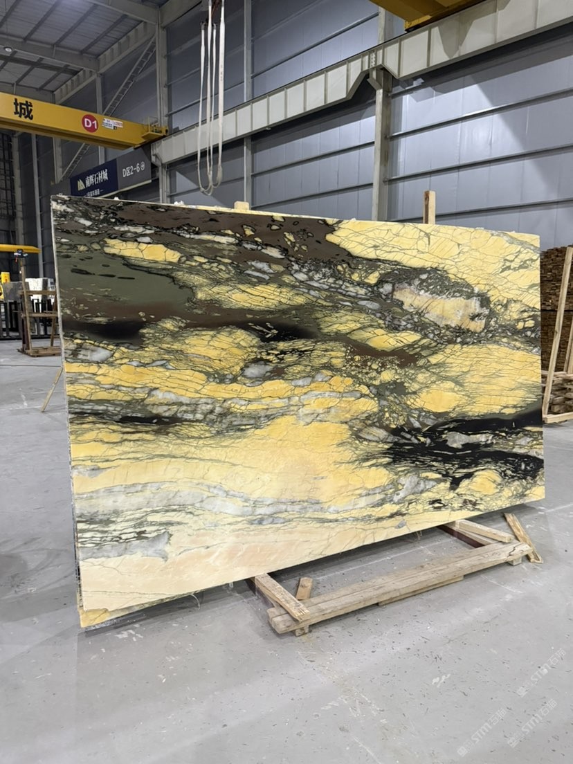 發(fā)布信息: 油畫里蹦出來一方天然石材,如天地初開的畫卷鋪展。燈光勾勒出它的輪廓,石材表面,黑金交織的底色上,金黃紋理似旭日破曉的光,肆意漫延,像初升太陽掙脫夜的束縛,把熾熱與希望,潑灑在這堅硬的石面,每一道紋路都是時光與自然攜手,繪就的旭日東升盛景,金燦燦的,滿是磅礴朝氣 。