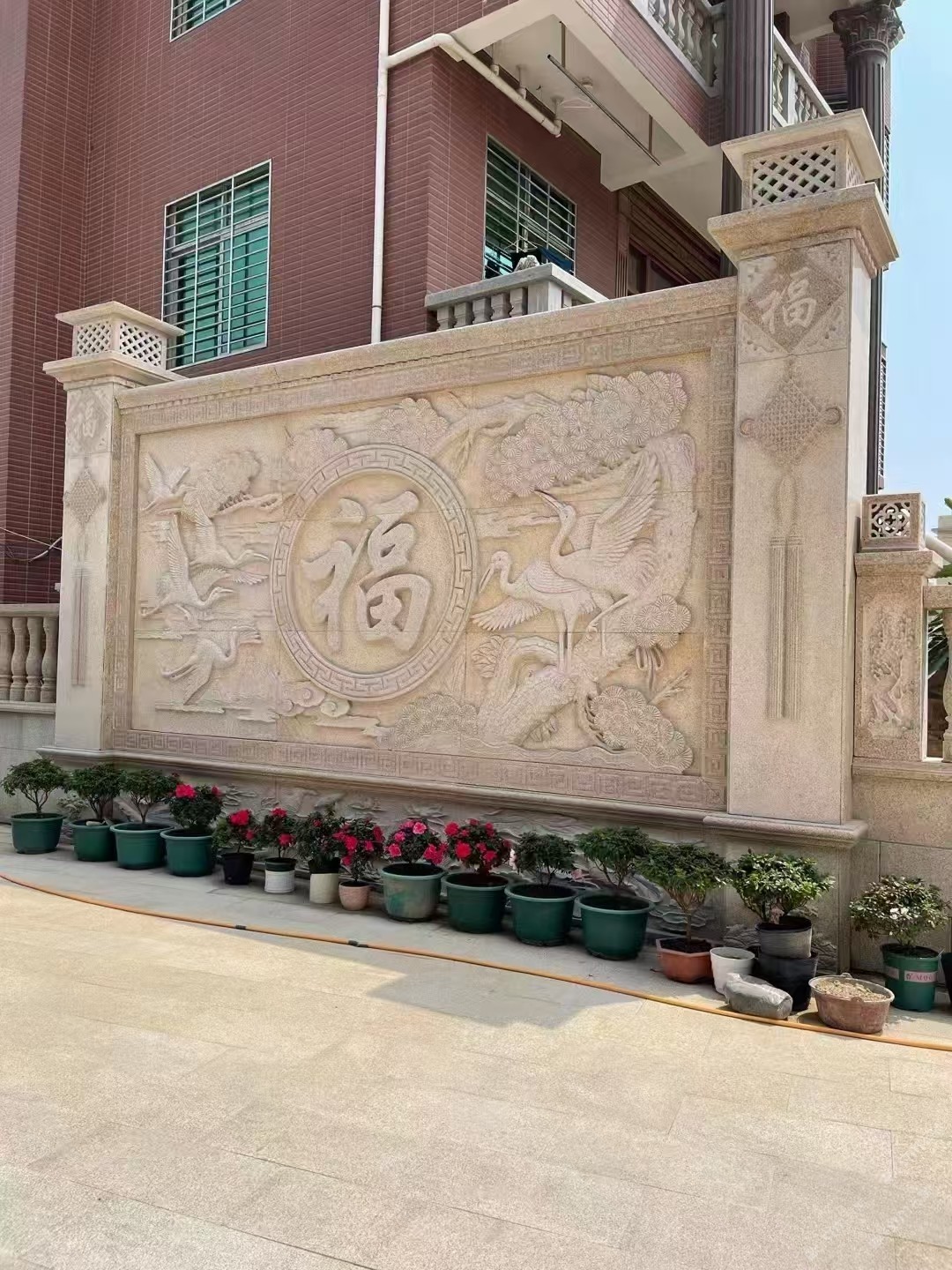 黃金麻,銹石,卡麥噴泉花缽風水石花盆欄桿石雕刻