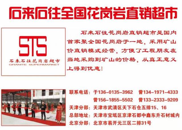 天津市石來石往花崗巖超市寶坻總部 聯(lián)系人:曾貴德    156****5502 查看 手機號碼:無 主營范圍: 大板批發(fā)、荒料、花崗巖加工、礦山、石材交易市場、 企業(yè)地址:天津?qū)氎鎱^(qū)九園工業(yè)園中鑫東升石材城內(nèi)14號