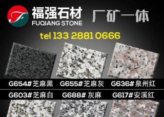 長泰縣福強(qiáng)石材廠主營產(chǎn)品:芝麻黑,芝麻白,芝麻白(火燒面),芝麻白(荔枝面),芝麻灰,芝麻灰1,芝麻灰2,G654,G654芝麻灰,G654(自然面),新G654,新G654(1),芝麻黑654(火燒面),芝麻黑654,新617,G617,新G623,G688,漳浦紅G648,G655,G655 (1),G655(荔枝面),G655(火燒面)1,新G655,長泰G655,芝麻灰(江西),芝麻灰655(火燒面),喬治亞灰,福建灰麻,福建灰麻(亞光面),福建芝麻黑,喬治亞灰(深色),灰麻1,金點(diǎn)灰麻2,金點(diǎn)灰麻1,新芝麻黑(火燒面),新芝麻黑(光面),芝麻黑(荔枝面),芝麻黑654(新礦),G655(漳州礦),芝麻白(603),芝麻白G603,G603,泉州紅,G636,G636(福建礦),G606(礱石),G606(正礦),黃銹石,柬埔寨芝麻黑企業(yè)地址:福建泉州南安市石井鎮(zhèn)林柄村江鋒石材廠