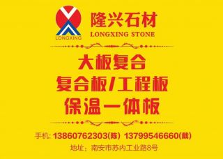 博晨大板復(fù)合主營產(chǎn)品:冷翡翠,拿破侖黑(法國),寶格麗,復(fù)合板(大理石鋁蜂窩),復(fù)合板(超?。?復(fù)合板(奢石),復(fù)合板(大理石瓷磚),復(fù)合板(大理石花崗巖復(fù)合),奢石餐桌,洗手盆(大理石),實心圓柱(大理石),臺面板(大理石),欄桿花瓶柱(花崗巖),背景墻(大理石),弧形板(花崗巖空心圓柱),內(nèi)裝樓梯板(大理石臺階)企業(yè)地址:福建泉州水頭鎮(zhèn)永泉山工業(yè)區(qū)萬隆石業(yè)廠區(qū)19號車間