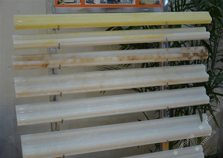 描述:裝飾中經(jīng)常用一些異型石材線條以達(dá)到使用美觀的目的。石線通常用天然大理石、花崗巖、玉石加工成單件或者多件組合拼接,形成整體的連續(xù)的石材線條。也有用模具將人造石壓制而成。